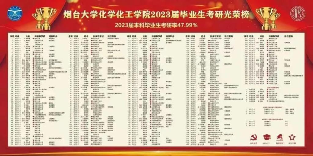学院党委先后荣获“山东省高校先进基层党组织” “山东省先进基层党组织”“山东省党建工作标杆院系创建培育单位”。学院重视学生个性发展与专业学习相融合,重视教风学风建设,努力为学生提供良好的学习、实践、科研氛围,学生培养质量稳步提升。学生科研团队近三年在全国“挑战杯”大学生课外科技学术作品竞赛、“互联网+”大学生创新创业大赛、全国大学生化工实验大赛等学生科创竞赛中连续荣获国家奖、省特等奖;连续多年在全国大学生化工设计竞赛、山东省化学实验大赛等比赛中获得一等奖。近年来,本科生考研录取率保持50%左右,整体就业率多年保持近100%。毕业生在化工、医药、材料、能源、资源、环保等领域以及相关企事业单位广泛就业,深受用人单位好评。(数据截止于2024年6月)