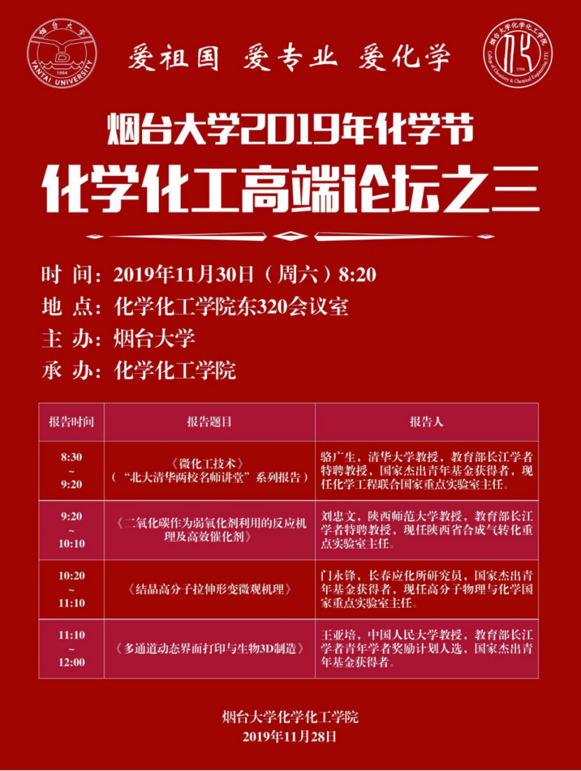 【预告】偷情视频 2019年化学节之偷情视频 研究生学术论坛化学专场