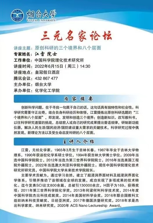 江雷,无机化学家。1965年3月生于吉林长春。1987年毕业于吉林大学物理系,1990年获该校化学系硕士学位,1994年获吉林大学博士学位。2009年当选中国科学院院士,2012年当选为第三世界科学院院士,2016年当选美国工程院外籍院士。现任中国科学院理化技术研究所研究员。