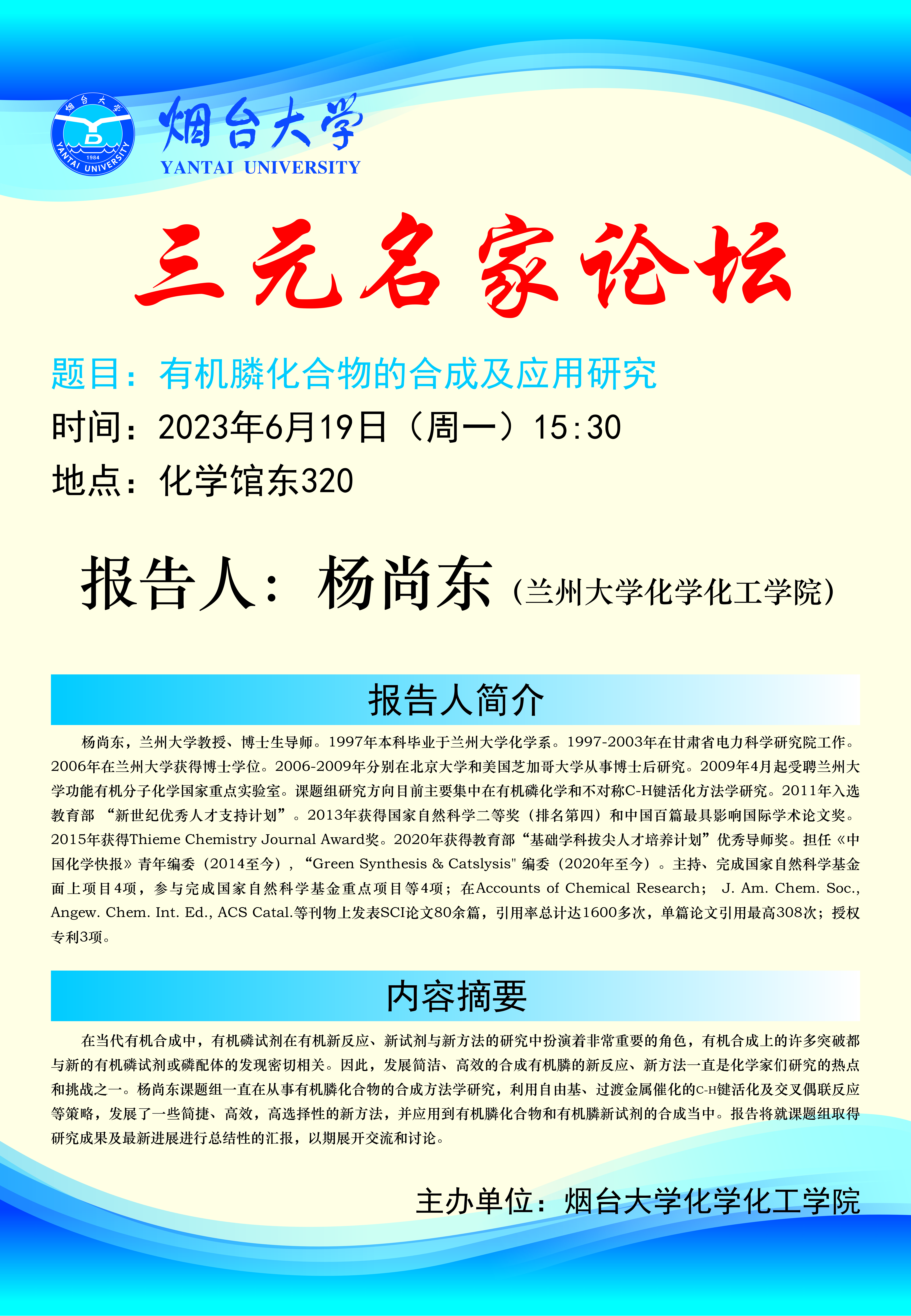 学术讲座 | 杨尚东教授莅临偷情视频 讲座预告