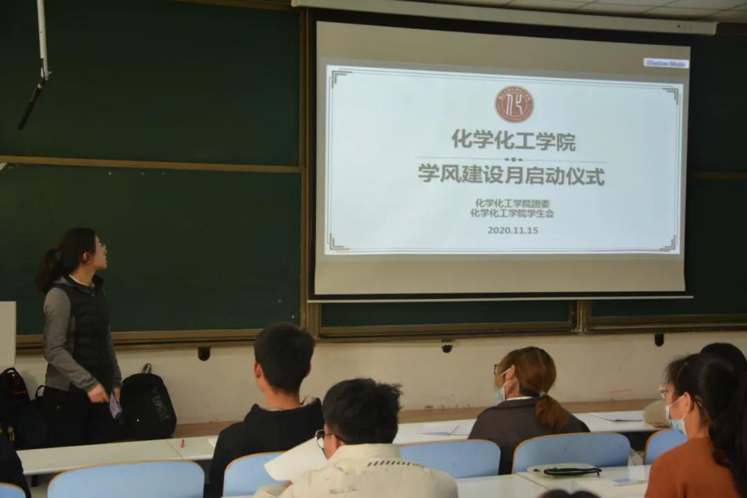 随后,院团委刘惠中老师、邹丽佳老师、院学生会执行主席仉辰分别为化工专业、高分子专业、应用化学专业作学风建设月启动仪式讲话,他们分别强调学院在去年倡导和执行“三无”工程的基础上,又倡导和贯彻“三要”——要晨读、要锻炼、要热爱专业,并以期中考试为契机,开展学风建设月,期中考试正是对学风的考验,而后期也将组织关于晨读、锻炼以及热爱专业方面的活动。