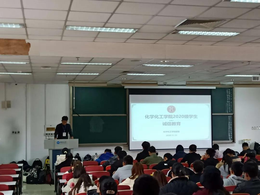 而后,院团委老师们对20级学生进行了重要的诚信教育,20级学生认真听讲,并在领誓人的领誓下齐举右拳庄严宣誓,展示了学子们对于诚信考试的支持与坚定。“ 我宣誓:牢记师长嘱托,不负烟大厚望;认真规范答题,严守考场纪律;守住人生底线,公平参与竞争;珍惜人格名誉,做光荣化院人!”