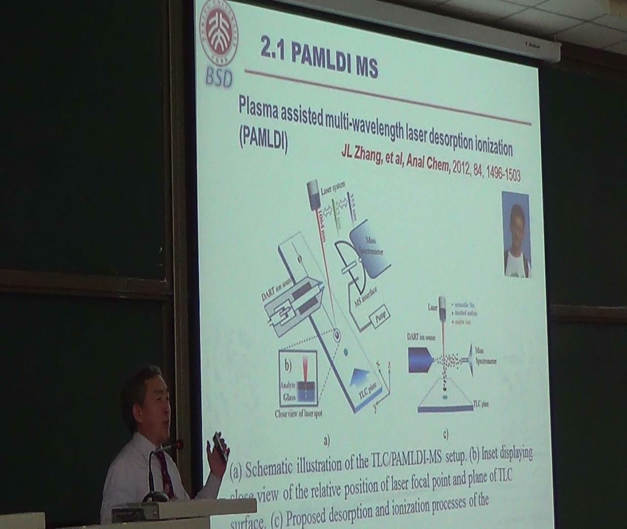 刘虎威教授报告题目为《常压敞开式质谱离子化新技术及其应用》,他在简要介绍北大和自己领导的课题组研究领域之后,对报告涉及的质谱离子化等技术问题做了背景阐述。接下来,刘虎威教授重点讲解了他的课题组在常压敞开式质谱离子化方面所做的最新研究工作,多项创新技术,设计精巧,实用快捷,应用广泛,一系列高水平研究成果发表在国际权威刊物上,获得同行专家的充分肯定。刘教授的报告生动活泼,引人入胜,引起了听众极大的兴趣,会场气氛热烈。刘教授还对所指导的研究生(博士生为主)及取得的成果一一进行了介绍,娓娓道来,如数家珍。