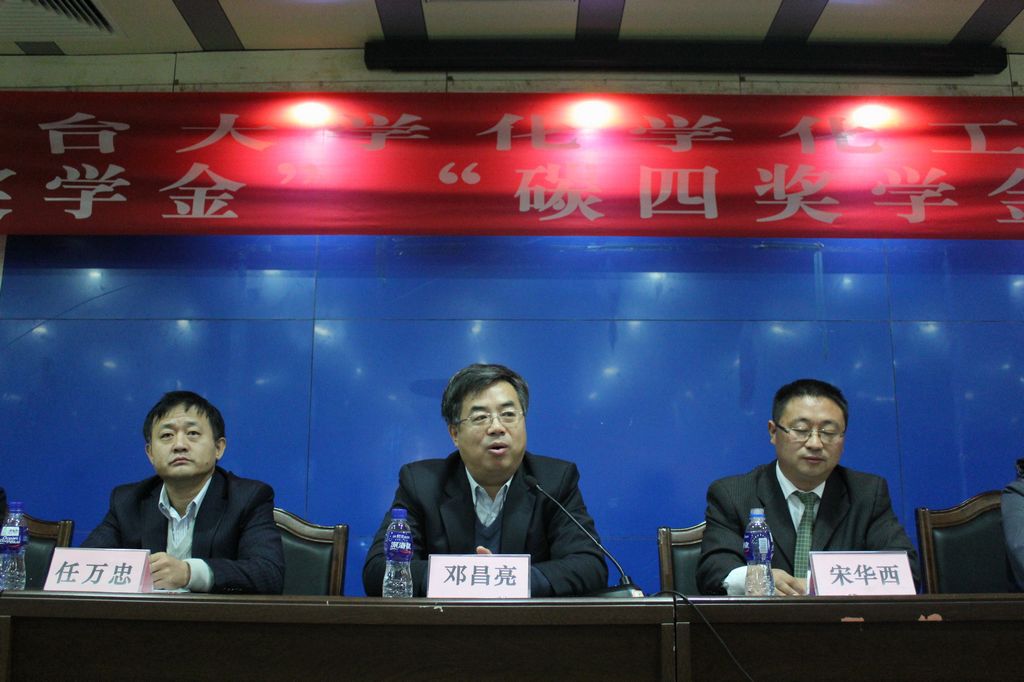 “泰达”奖学金、“碳四”奖学金颁奖仪式在逸夫图书馆报告厅隆重举行,副校长邓昌亮、烟台泰达集团董事长宋华西、泰达集团工会主席牛韶杰、办公室主任王红波、我校研究生处副处长秦志杰、学工部副部长杜昊、化院院长任万忠、副院长索掌怀、高原、碳四项目课题组代表许文友、院长助理李文佐等出席仪式。颁奖仪式由院党委书记邬旭然主持。学院教师代表、获奖学生及偷情视频