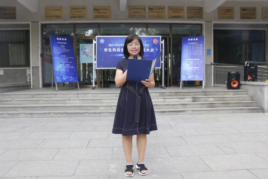 “学生科技创新优秀指导教师”代表王美日老师代表指导教师们发言。她回忆了团队从初赛到决赛的历程,肯定了学生们在科技创新实践活动过程中的成长,并鼓励同学们放手去做、相信自己、努力拼搏取得更新更好的成绩,并对学院领导、同事给予的大力支持表示了感谢。