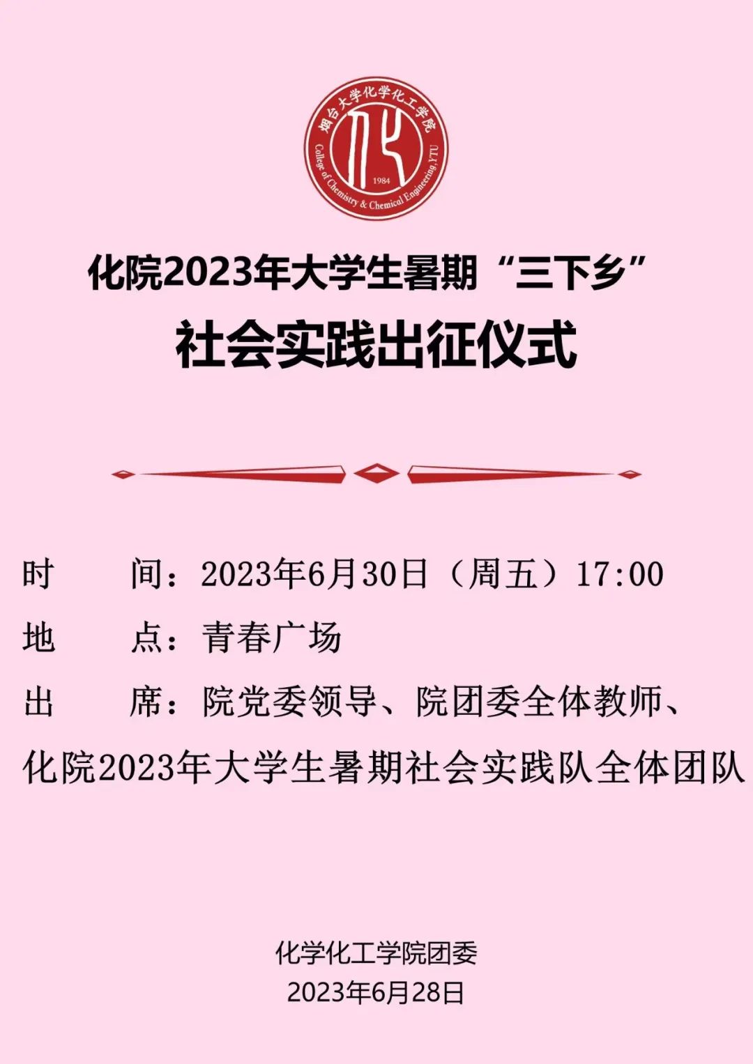 暑期“三下乡”社会实践 | 化院2023年大学生暑期“三下乡”社会实践出征仪式预告