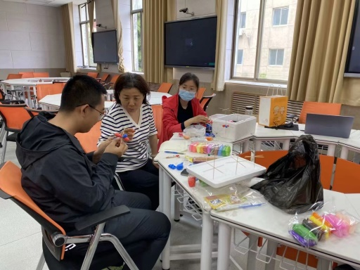 教学团队为刘绍丽老师磨课,讨论教具制作等。