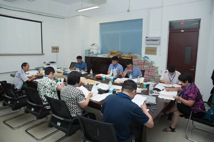 本次大赛专家委员会组长艾宁(中)、全国大学生化工实验大赛华北赛区秘书长范江洋研究员(左一)在考试现场,当众抽取理论考试试卷。