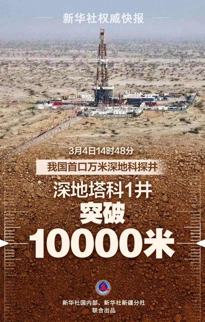 3月4日14时48分,随着一枚金刚石钻头持续刺破地下岩层,我国首口万米深地科探井正式穿越万米大关。这标志着继深空、深海探索大自然的壮举之后,我国在深地领域实现重大突破。