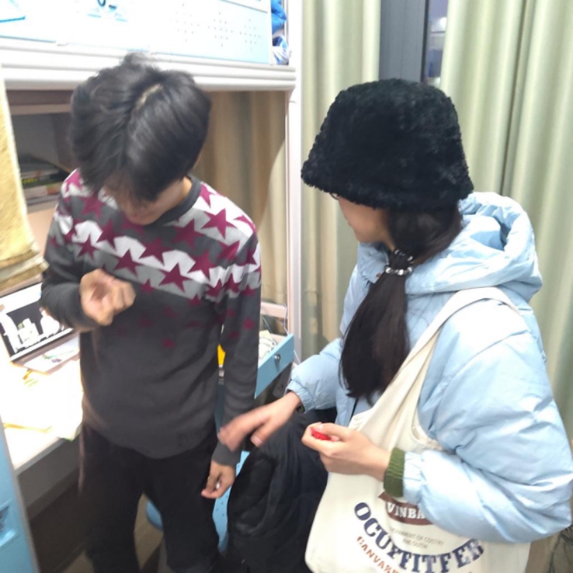 本科2023级辅导员赵锦泽老师走访学生宿舍。