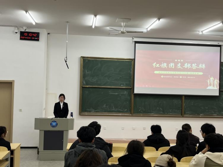 暨红旗团支部评选答辩会”的现场