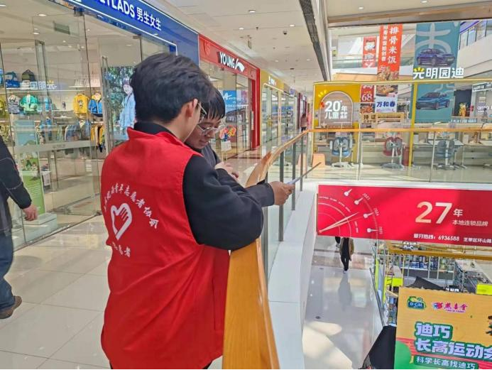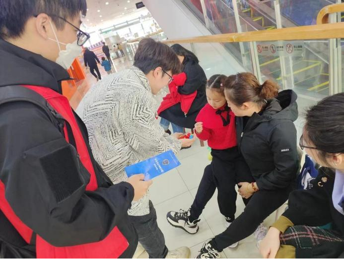 同学们分布在商场的各个角落,向行人宣传反诈骗知识,并将精心准备的反诈宣传单递至他们手中。同学们阐述了当下反诈的重要性,提醒大家不仅要提高反诈意识,守护财产安全,还鼓励大家要积极劝诫他人,共同将不法分子拒之门外,携手筑牢“反诈堡垒”。