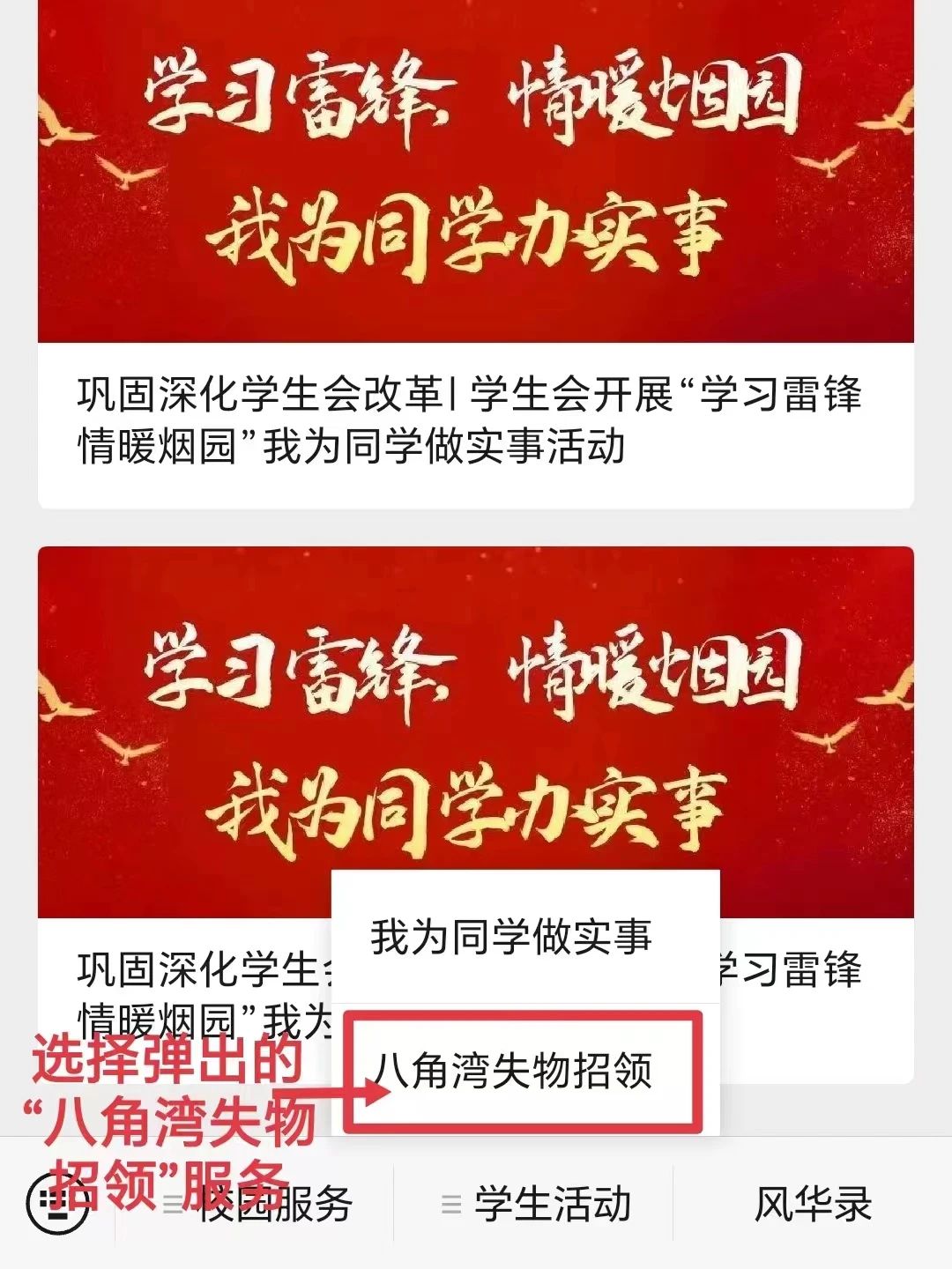 可以通过联系后勤处林老师(13184025878),询问失物的具体情况,或者同学们也可以在八角互助群内求助,互相交流失物信息。