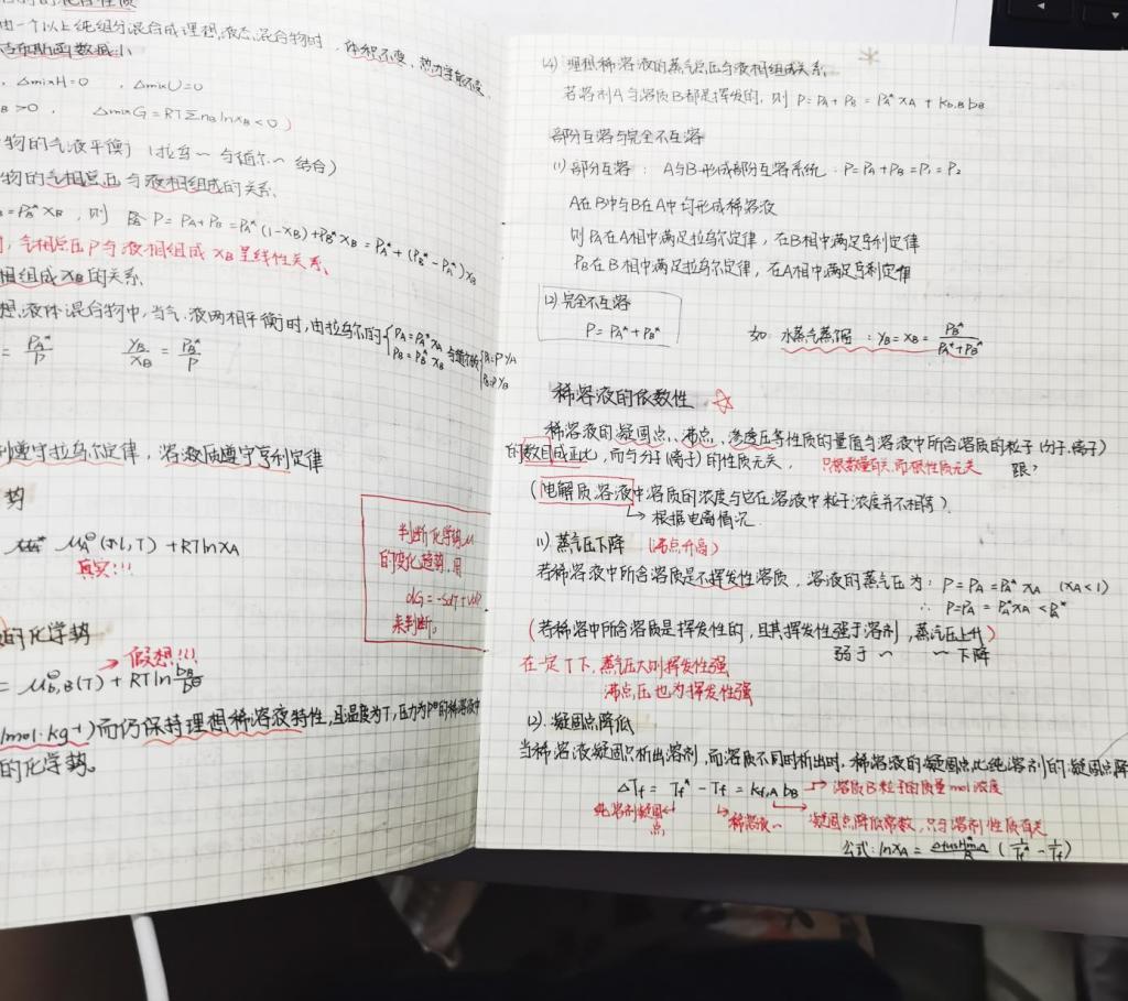 在物理化学科目的复习上,牛和旭给出了以下几点建议:极为关键的一点是要认真细致地画“思维导图”,不能只画个大概,因为只有这样,才能清晰地明白这一部分所讲的内容。牛和旭还提到公式记忆一定要准确,可以先自己推导一遍公式,这样更有利于记忆。此外,一定要及时且详细地整理错题,并做好分类整理。