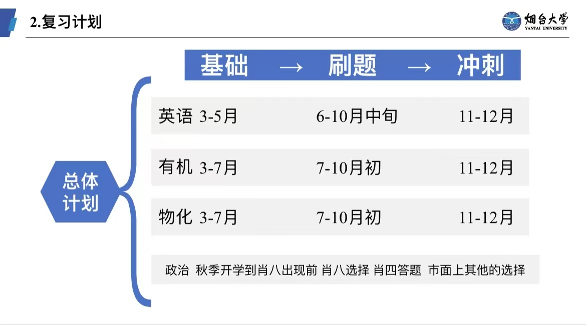 对于考研,孟佳璇说备考阶段一定不要慌张,有次序的安排胜过无目标的前进,学会合理安排时间是在考研过程中“先发制胜”的关键。