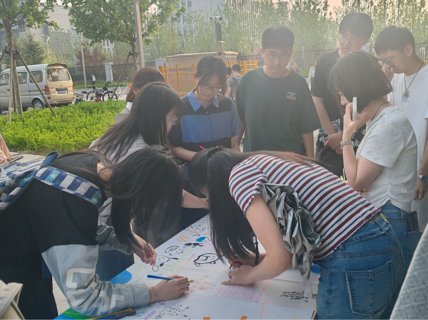 约定是浪漫的开始,快在画布上留下属于你独特的印记吧!5月23日下午,化院学生心理协会在八角湾校区梅园餐厅南侧举办了“一言为定”心理趣味活动。同学们在画布上留下了许多可爱的、生动的画作,留下了许多美好的祝福与对未来的期许。把自己想说的话、想要表达的情绪通过文字或者画作传递出来,通过这样的方式来放松心情,减轻压力,感受生活中的美好,支撑自己不断前行。