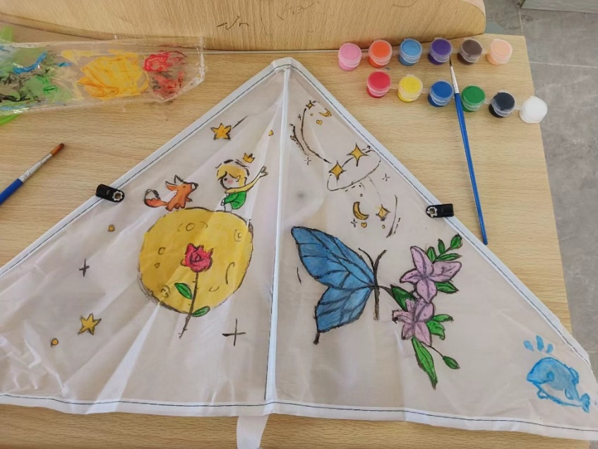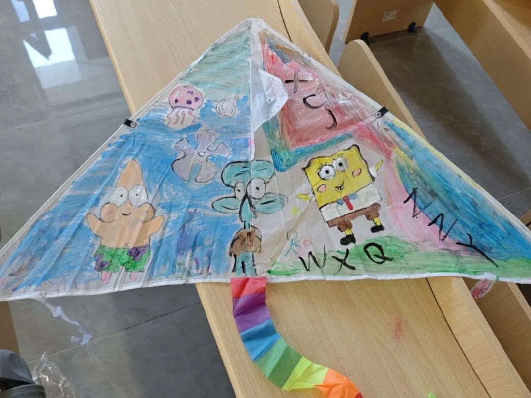 应231-3班张子玥、王晓勤、谢成静同学的风筝作品。