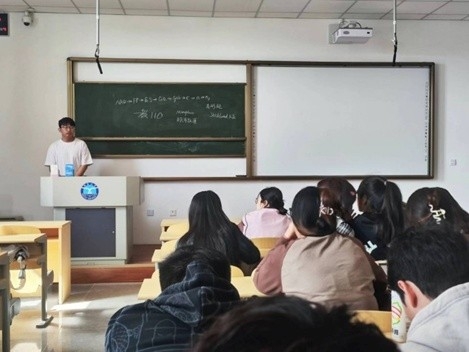 刘建昊同学在向各位心理委员介绍“5·25心理健康节”。