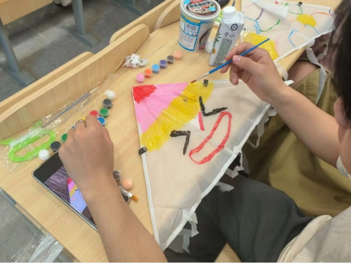 同学们正在认真地完成风筝绘画。