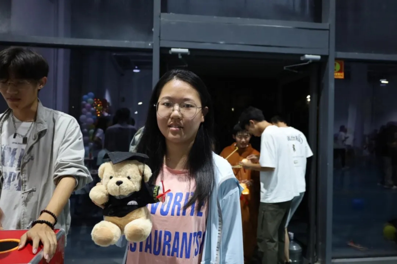 化222-1班乔世闯:这是我第三次参加中秋游园会,每一年的中秋游园都能给我带来惊喜。今年的好几个摊位都很有趣,不仅让我玩的很快乐,还进一步了解了中秋佳节的文化底蕴。活动现场很温馨,有不计其数的工作人员和志愿者与我们同在,大家一起欢声笑语,我也深深地感受到了化院大家庭的温暖。虽然最后没有抽到一等奖,但我依旧非常开心!
