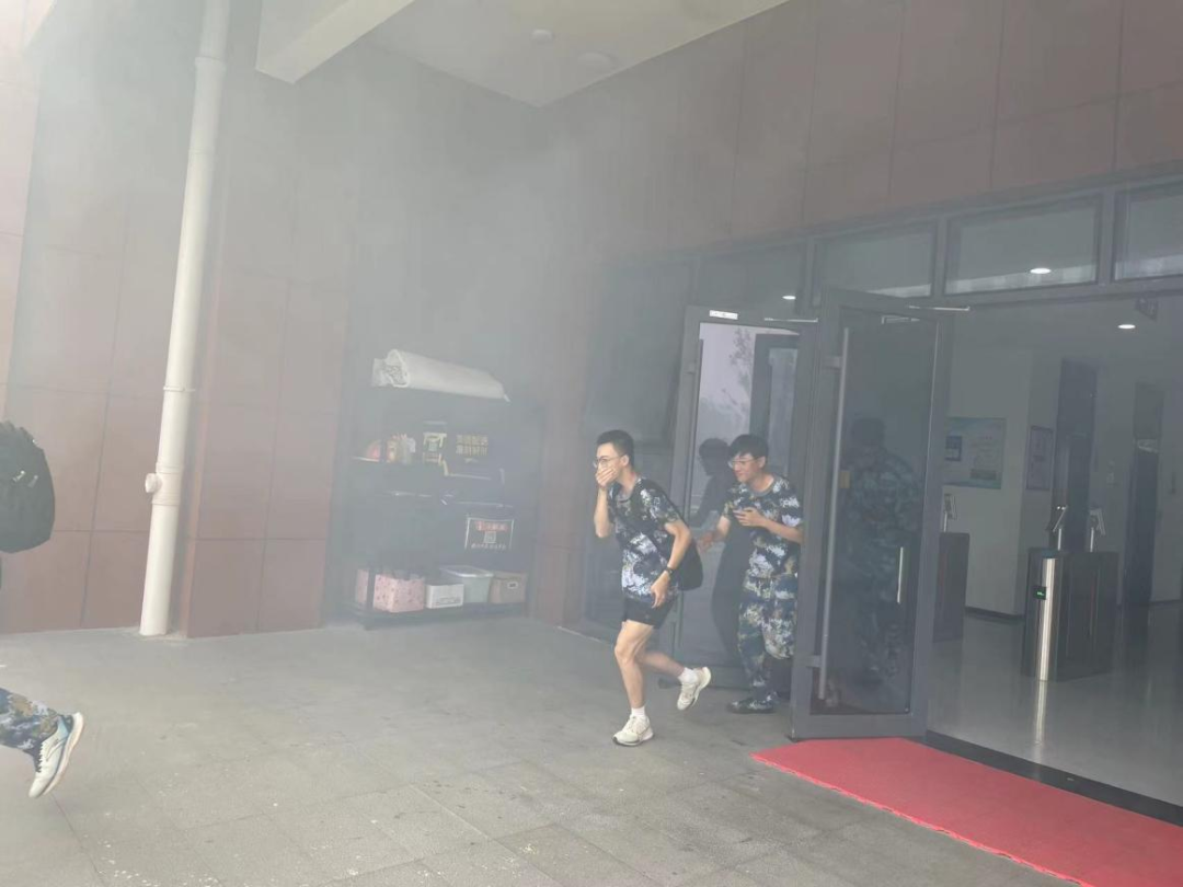 随着警报声响起,消防安全应急疏散演练正式拉开序幕。2024级全体“化小水”们迅速俯下身子,捂住口鼻,沿着楼道快速有序地撤离“火灾”现场。短短几分钟,全体师生配合到位,现场秩序井然、反应迅速。同时在老师和消防员带领下,“化小水”们在实操中掌握了干粉灭火器的操作步骤,深入了解消防安全知识。