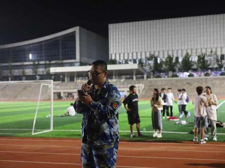 学院学工负责人、辅导员张成友老师给新生们讲解军训方案。