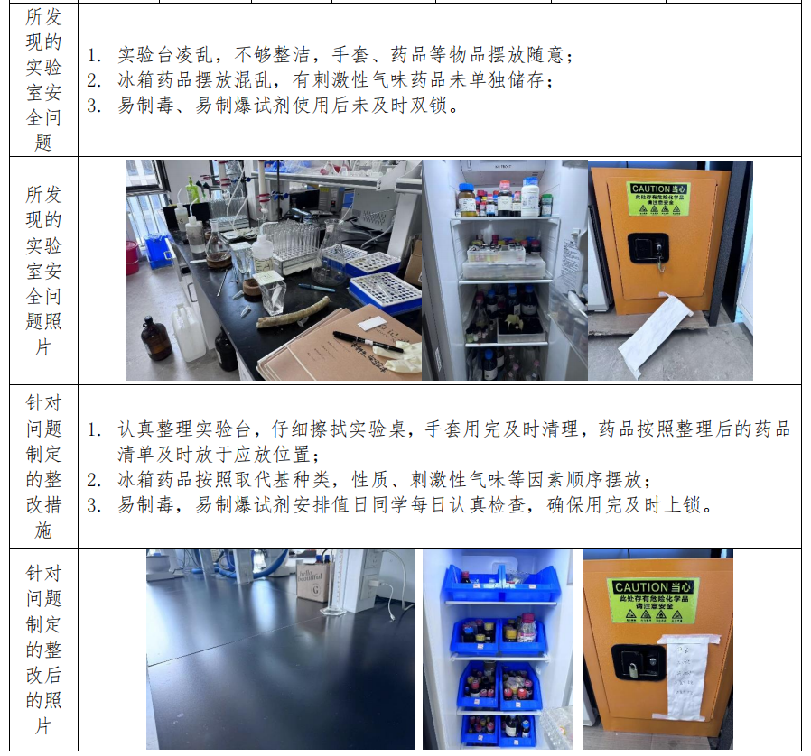 化研22级姜建正同学的“实验室安全问题整改清单”作品。
