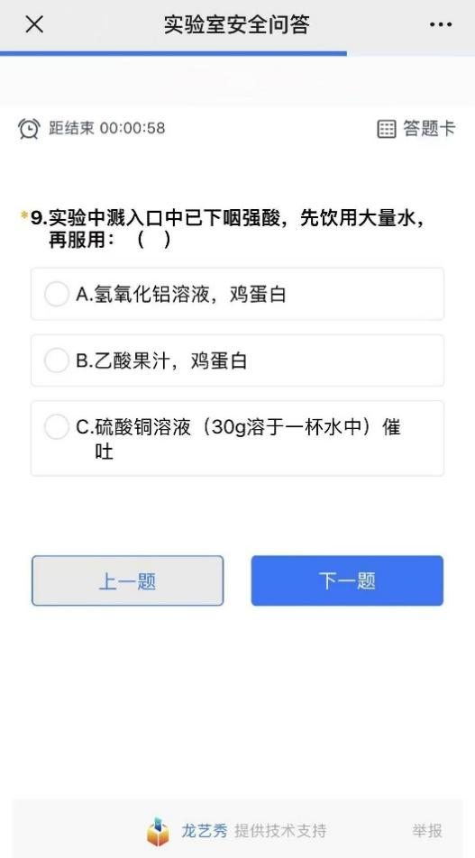 生命科学学院举办“实验室安全知识竞答活动”,本次活动通过线上小程序开展。旨在确保学生了解实验室安全的重要性和必要性,提高同学们对实验室安全问题的关注度;培养同学们主动遵守实验室安全规定的意识,并形成良好的安全习惯。