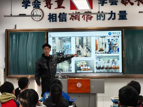 诚挚邀请同学们积极参与活动当中。化院凭借卓越的教育成果和优秀的毕业生而备受赞誉,借“引航计划”,同学们以自身大学经历讲述他和烟大的故事,提升烟大知名度,彰显化院魅力。现在,跟着“化小水”一起,来看看化231-3班王家琪、化241-3班李风涛、化241-6班傅友诚三支队伍在青州市实验中学、武城县第二中学、烟台四中的精彩表现吧!