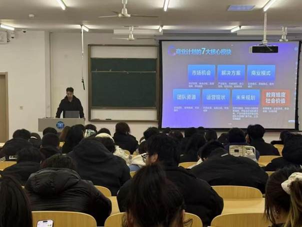 在八角湾校区第一教学楼201教室举办了2025年科技创新赛事宣讲会。宣讲会由曹瑞麟同学主持,邀请了院团委邹丽佳老师、兼职辅导员寇晨辉老师,以及科创团队优秀学生代表夏丹丹、程飞杰、段清旭同学来分享他们的科创经验,帮助大家更加全面地了解科创比赛的相关情况和信息。