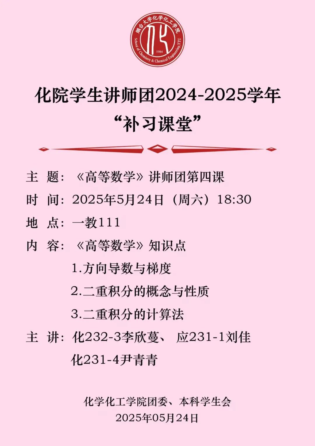 “化小水”的学风建设 | 学生讲师团2024-2025学年春季学期“补习课堂”之三