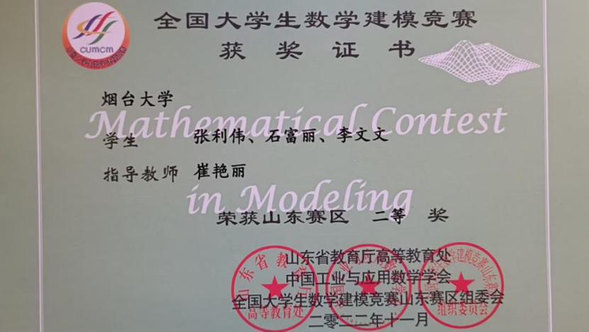大学四年,应211-3班成绩斐然,班级两次获得“先进班集体”荣誉称号,共获得各级各类奖学金50余项,1人次获得省政府奖学金,4人次获得国家励志奖学金。竞赛方面,应211-3班同学曾获得全省大学生数学竞赛二等奖,全国大学生数学竞赛二等奖、“建行杯”第八届山东省大学生创新创业大赛铜奖、全国大学生数学建模大赛山东赛区二等奖、第十八届挑战杯一等奖等。