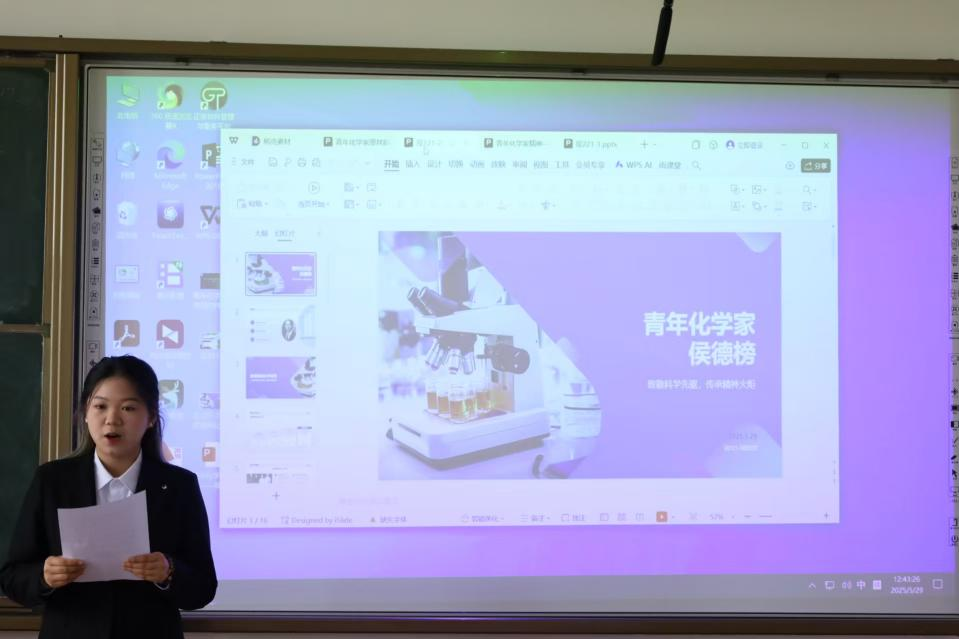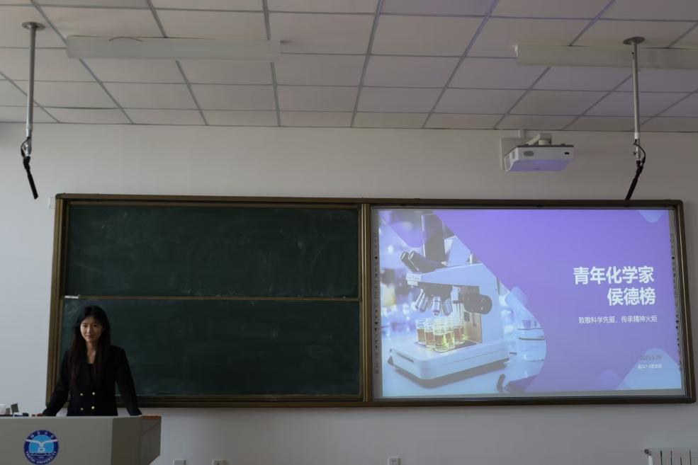 在这场充满科学魅力的活动中,22级各团支部的精彩讲述令人心潮澎湃。化222-3团支部的徐文静以居里夫人的传奇人生为引,深情诉说其从贫寒少女成长为伟大科学家的历程,展现她在科研困境中坚韧不拔、无私奉献的精神;应221-2 团支部的王淑轩则聚焦我国化工先驱侯德榜,讲述他放弃优渥条件回国,打破西方制碱技术垄断,用“红三角”纯碱与联合制碱法书写科研报国的赤子篇章;应221-1 团支部的林诺瑶带大家走进黄鸣龙先生的科研人生—— 无论是战火中的坚守改良反应,还是毅然归国投身研究,他“板凳甘坐十年冷” 的执着精神,都为青年科研之路点亮明灯。三位讲述者用生动的故事,让科学巨匠们的精神在现场熠熠生辉,引发观众强烈共鸣。