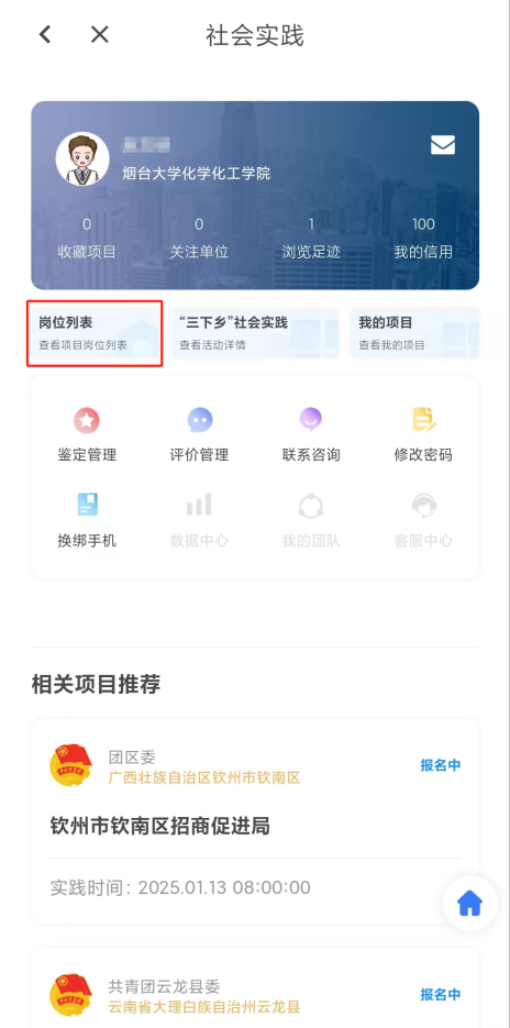 3.选择【岗位列表】→状态选择【报名中】→申请报名。