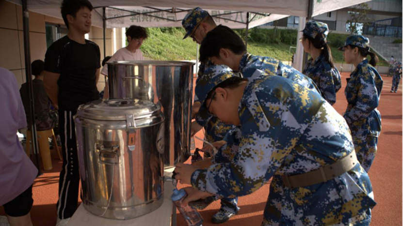 训练场上,除了新生与教官的身影,还有一群“守护者”始终在场——学院党委书记林立成老师、党委副书记唐安志老师,以及全体辅导员、班级导师、导师助理,多次来到训练场查看训练情况,叮嘱新生注意劳逸结合,及时补充水分。他们的每一次驻足、每一句叮嘱,都化作新生坚持训练的温暖动力,也让军训时光多了份安心与归属感。