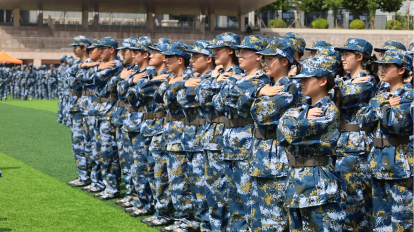 傍晚的操场褪去了白日的燥热,晚训的重点从队列训练转为军歌学唱。“全体都有,坐!”随着指令,“化小水”们整齐地坐好,目光专注地望向领唱的同学。