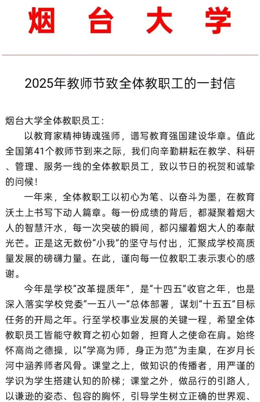 2025年教师节致全体教职工的一封信
