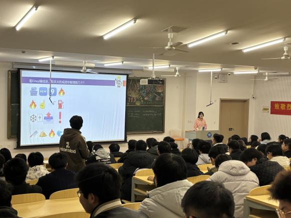 随后的消防器材猜图环节更是妙趣横生,同学们在轻松愉快的氛围中增进了对消防器材的认识。知识宣讲环节中,各班学委现场默写火灾相关化学反应方程式,将专业知识与安全实践完美融合。