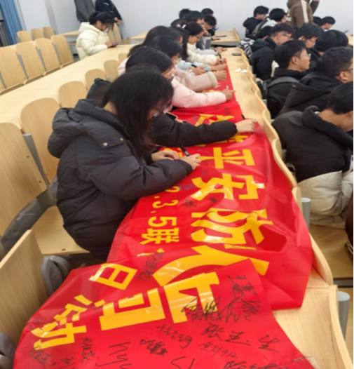 这一刻,笔尖划过的不只是布帛,更是一份沉甸甸的承诺与责任。每一个签名都代表着化院学子对消防英雄的崇高敬意,也彰显着大家共同维护校园安全的坚定决心。