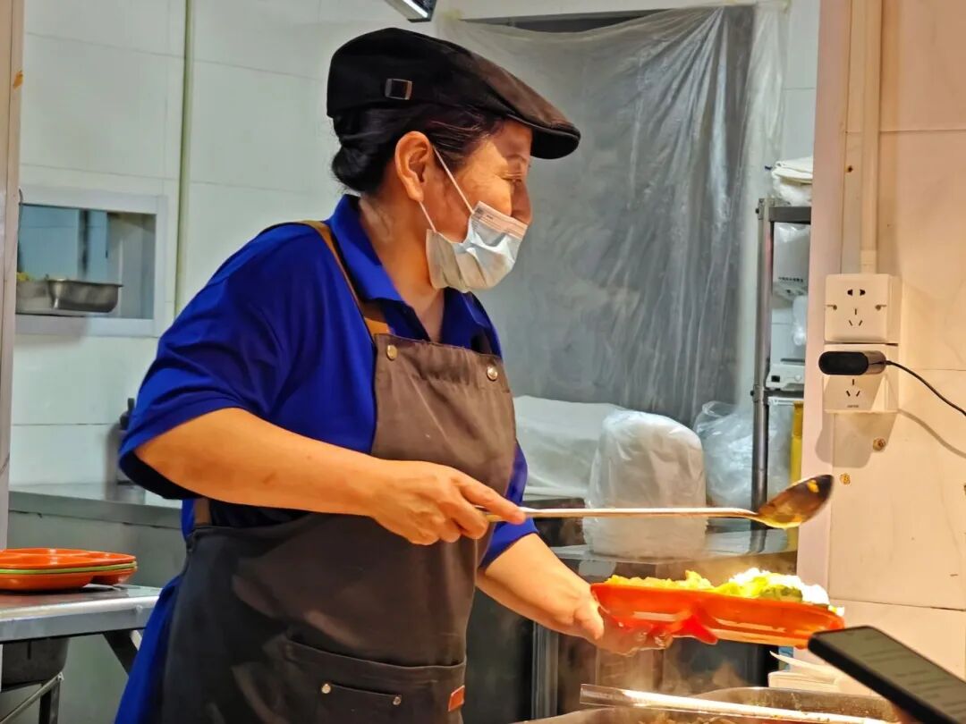 食堂中递出热餐的微笑