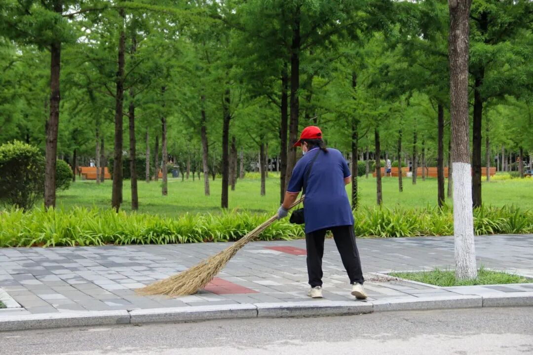 晨光里清扫校园的身影
