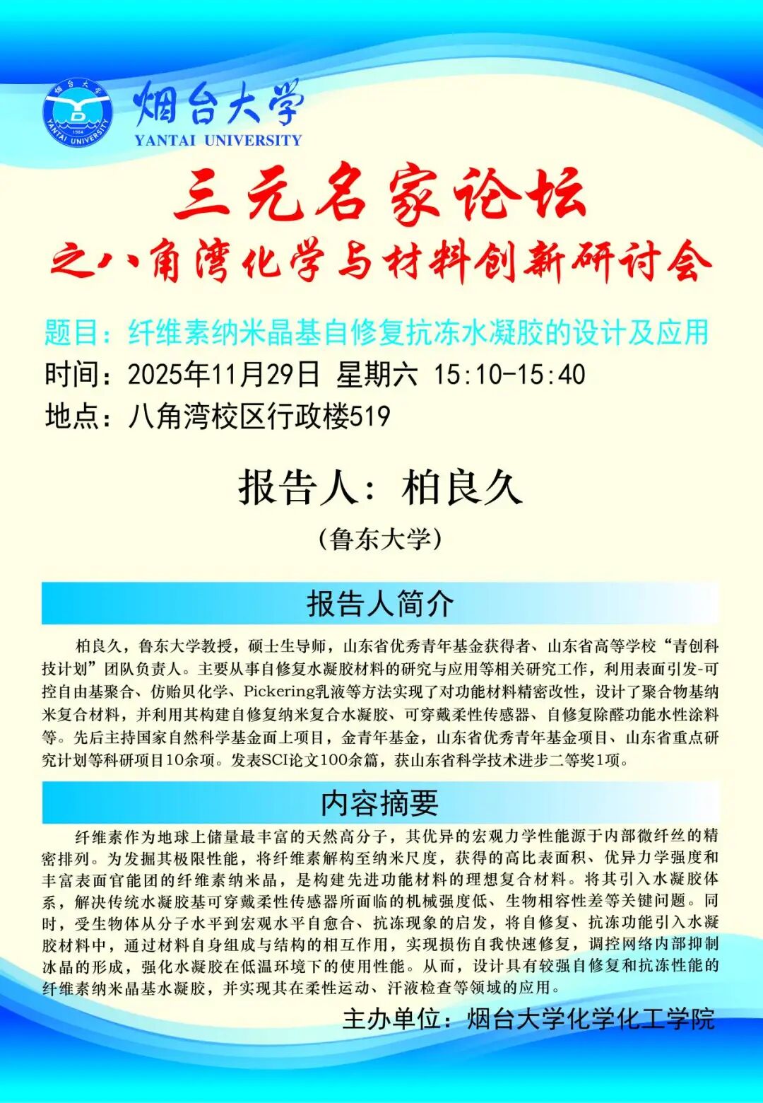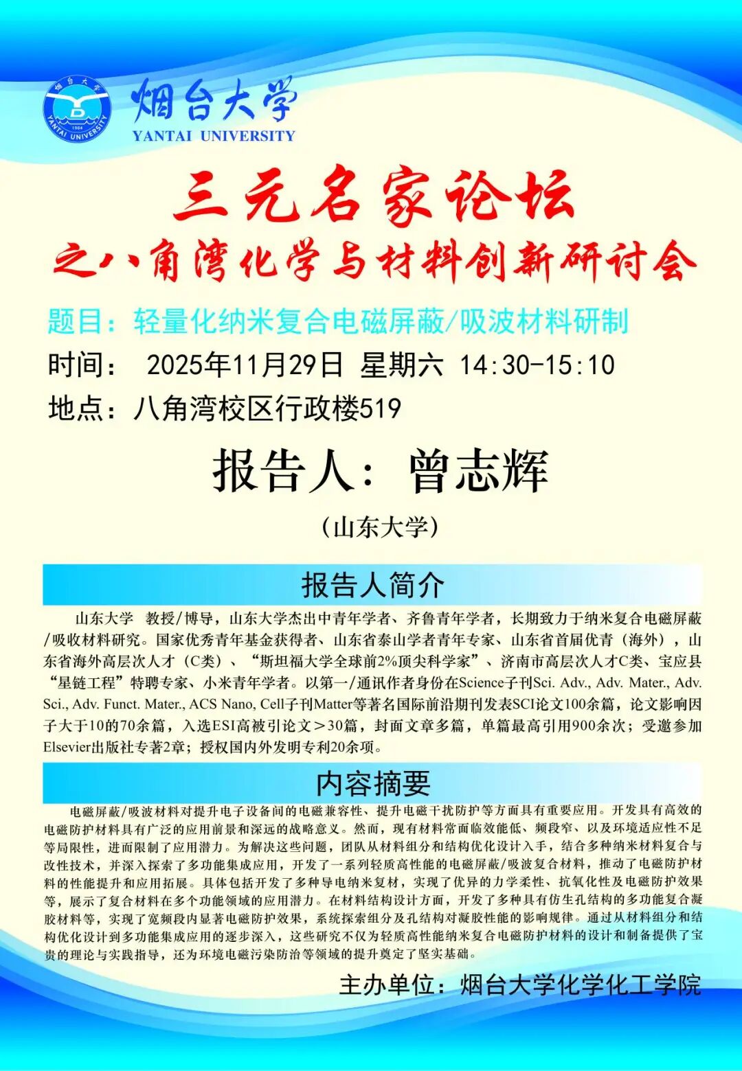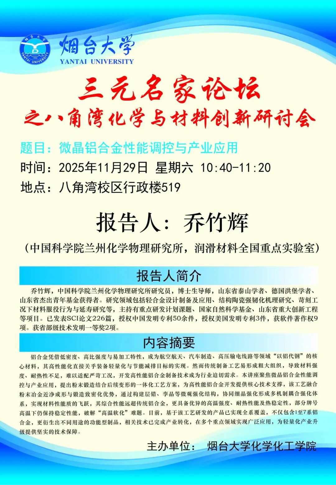 学术交流 | 三元名家论坛之八角湾化学与材料创新研讨会