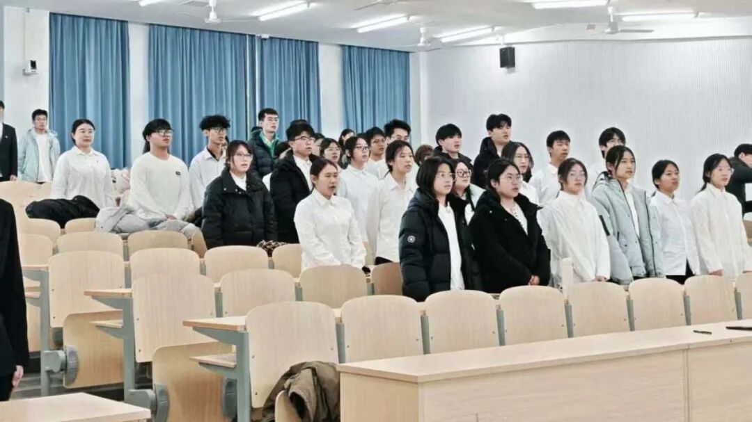 团委在八角湾校区第一教学楼201教室举行2025年下半年新发展团员入团仪式。院团委老师代表、优秀团员代表与30名新团员齐聚一堂,共同见证这一庄严而充满青春信仰的时刻。