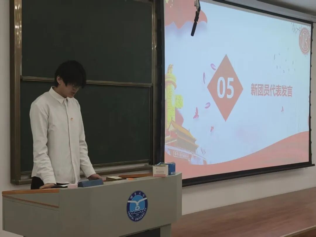 优秀团员代表田婉婷结合自身在学业深耕与实践历练中的成长感悟,向新团员们送上真挚而务实的成长建议:共青团是青年锤炼品格、增长才干的“大课堂”,更是承载理想、奔赴远方的“加油站”。新时代青年生逢其时、重任在肩,更需锚定航向、笃行不怠。希望新团员们能以青春为笔、以奋斗为墨,始终保持昂扬向上的青春姿态,以蓬勃朝气直面挑战、奋勇争先,在属于自己的青春赛道上奋力跑出新时代青年的最好成绩。