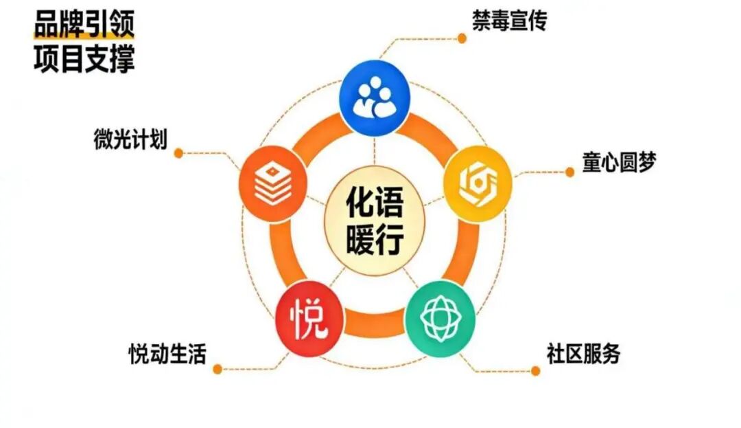 学院依托专业特色与育人需求,明确“化语暖行”核心品牌定位,聚焦校园、社区、社会这三维服务场景,搭建“一体五翼”志愿服务架构,构建起以品牌为引领、以项目为支撑的发展格局。“一体”指的是“化语暖行”核心品牌,它作为学院志愿服务的总引领,彰显学科特色与青年的责任担当,统摄各项志愿服务活动的方向与内涵。“五翼”是对禁毒知识宣传、童心圆梦、社区服务、悦动生活、微光计划这五大成熟志愿服务项目的深耕与升级,通过细化服务内容、优化实施流程、拓展合作渠道,使每个项目成为核心品牌的坚实支撑。