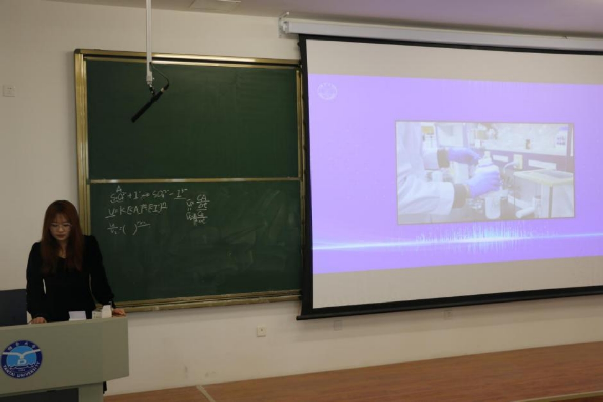 夏丹丹同学根据自己对化学的理解并结合自己的专业进行以“爱化学、爱专业、爱祖国”为主题的演讲,两位选手按照编号顺序依次进行了演讲,演讲结束后评委老师们进行了点评打分。
