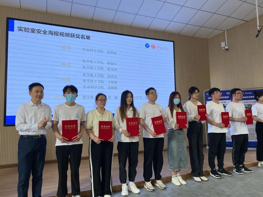 随后,李文佐院长、林立成书记、梁入文副处长为本届“实验室安全月”子活动——实验室安全宣传海报、视频创意设计大赛,实验室安全问题整改清单征集、评比活动,实验室安全知识答题赛进行颁奖。获奖同学偷情视频