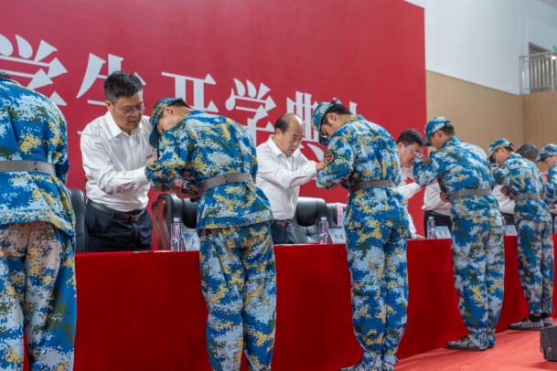 应241-6班马泽宇同学代表2024级本科新生向学院领导、老师、军训教官以及学长学姐表达了衷心的感谢!他说,同学们要始终牢记“坚韧团结,乐观奉献”的军训精神,在未来的大学时光中,坚持做到“在困难中不屈不挠,在挑战中寻找自我”。
