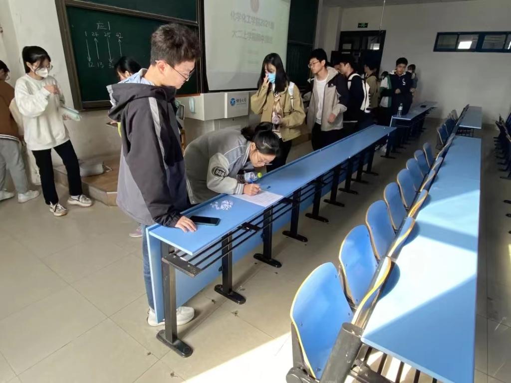 10月29日,在综合楼和五教,化院组织了2022—2023学年秋季学期期中考试,考试科目包括《高等数学》《普通化学原理》《物理化学》等。经学院学工组与相关教研室、任课老师充分沟通后,本次考试仍采取“无人监考”“学生交换阅卷”模式,以2021级和2022级全体学生为主。考虑到疫情导致部分同学不能返校,本次“无人监考”线上线下同步进行。