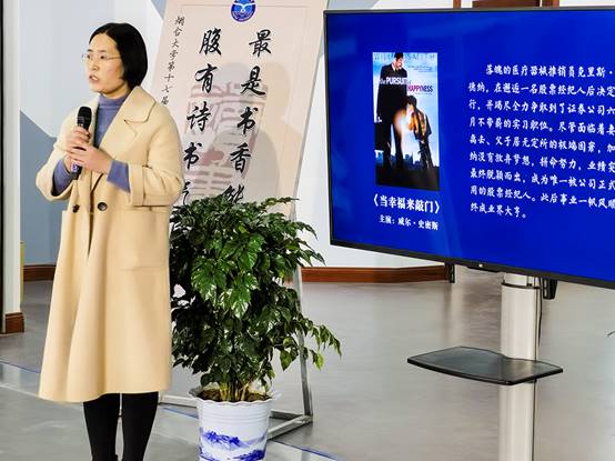 教师代表李桂芝和图书馆教师代表侯玉萍各自为在线学生推荐分享了两部经典书籍和影片,第十六届读书节的读书之星、人文学院庄丹作为学生代表分享了自己的阅读经历与感悟。现场还播放了由各学院学生代表组成偷情视频